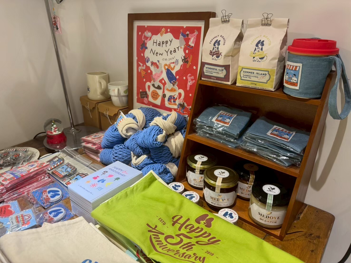 Clip Coffee 不僅是喝咖啡的地方,也是一間有選物感的咖啡館。店內不定期設有設計師小物、文創提袋、貼紙與年曆等選品,讓人坐下來不只是喝咖啡,更像在逛一間質感小店。
