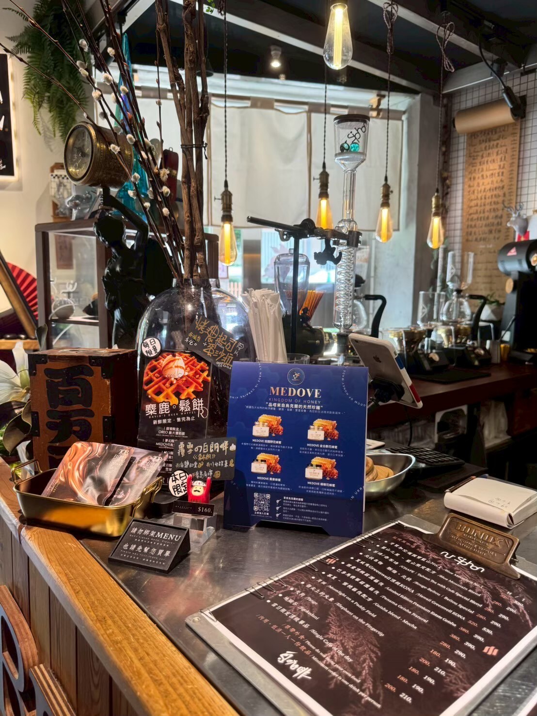 茶咖虹吸:在這裡,不只是咖啡可以被虹吸,茶與咖啡的融合更是亮點。比如普洱古樹茶與咖啡豆共煮,層次從茶香到咖啡餘韻,豐富而細緻。