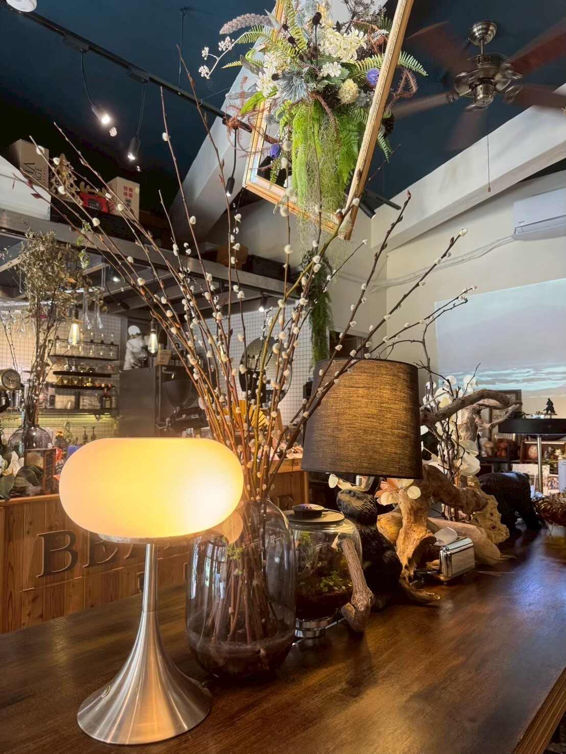 進入豆三店,你先會被那份「慢」的氛圍抓住。木質家具、柔和燈光、少許植栽點綴,牆面甚至播放老電影,營造出一種兼具專業與溫度的空間。